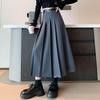 Jupe plissée en laine taille haute pour femme avec ceinture – Grande taille, rétro, longueur midi pour l'automne et l'hiver