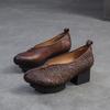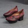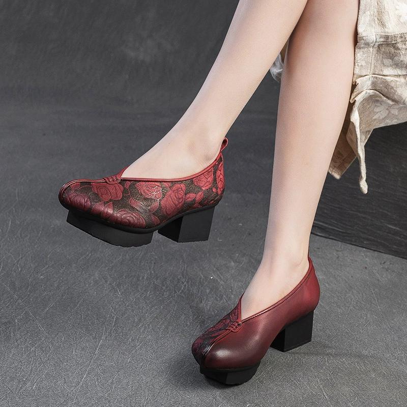 Mode GKTINOO Printemps Automne Style Ethnique Bout Rond Talons Hauts Chaussures Maman Cuir Vachette Plateforme Rétro Escarpins en Cuir Véritable Chaussures Femme