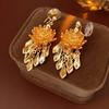 Boucles d'oreilles à clip pompon feuille de lotus plaqué or Boucles d'oreilles haut de gamme pour femmes Nouveau style chinois Zircon pour mariée de femmes anciennes