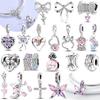 Amour Rose Ballerine Fille Bricolage Accessoires Perlés Breloque Argent S925 Pendentif Noeud Doux