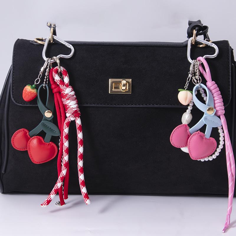 1 Pièce Mignon Amusant Résine Fruit Clé Chaîne Perle Série Cuir Cerise Pendentif Sac Accessoires Sac à Dos