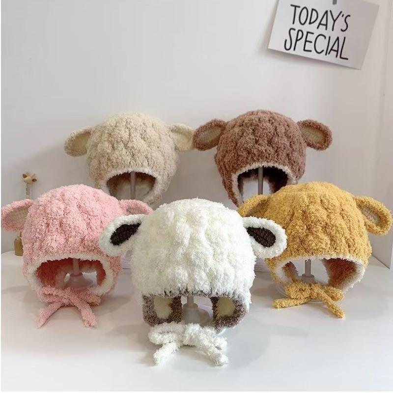 Chapeau d'agneau en peluche pour bébé automne et hiver chapeau d'oreille mignon jeunes enfants hiver garçons et filles chapeau de laine pour bébé