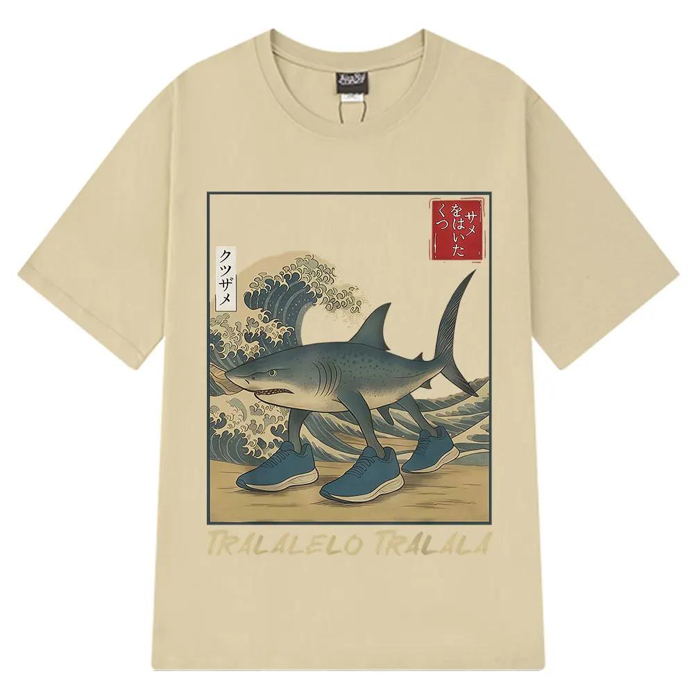 Tralalero Tralala T-shirt Mème Requin Drôle Vintage Unisexe T-shirts à Manches Courtes Coton de Haute Qualité