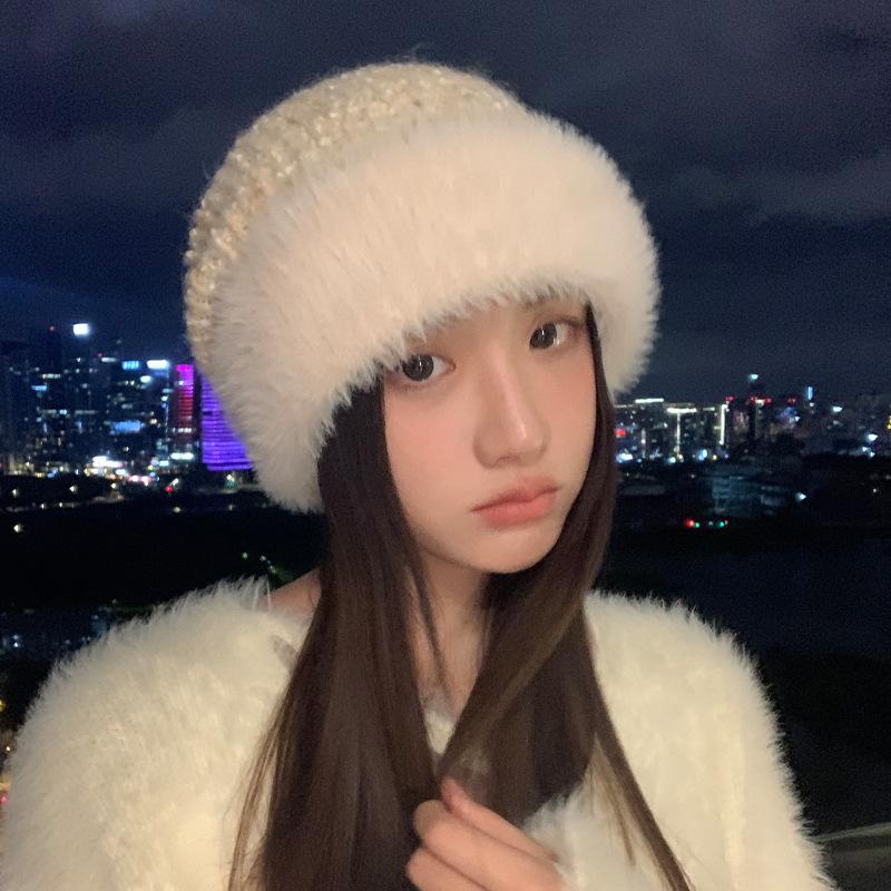 Chapeau d'automne et d'hiver Chapeau polaire chaud pour femme Chapeau polaire polyvalent Protège-oreilles Sac Chapeau froid pour la tête Chapeau tricoté en laine