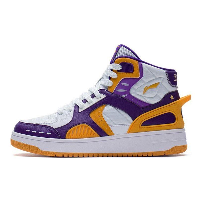 Li Ning Culture Basketball Rebond Amorti Baskets Montantes Baskets Femmes Blanc Violet Jaune ABCS064-2