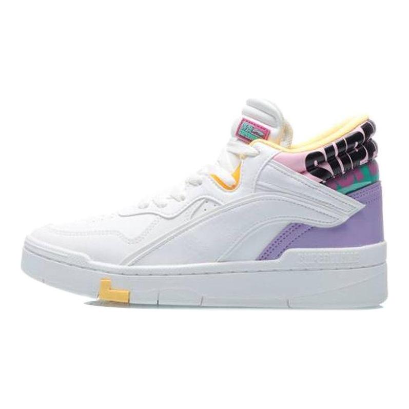 Li Ning Superwave Mid Baskets Montantes Décontractées Baskets pour Femmes Blanc Violet AGCQ238-3
