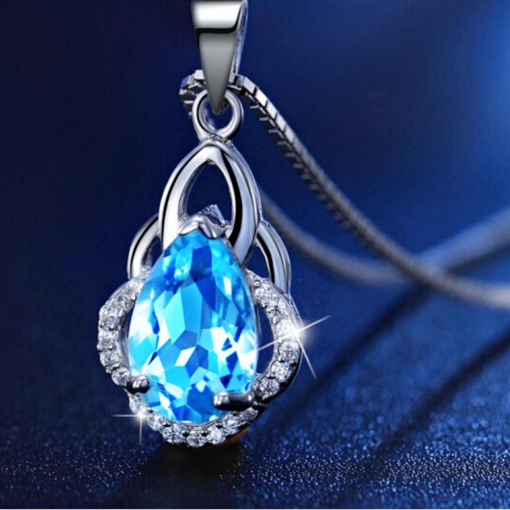 Collier Yi Hua Topaze Bleu Mer en Forme de Larme & Cristal pour Femmes