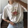T-shirt en coton pour femme, style décontracté, ample, col rond, imprimé fruits, mode estivale européenne et américaine, polyvalent, pour le quotidien