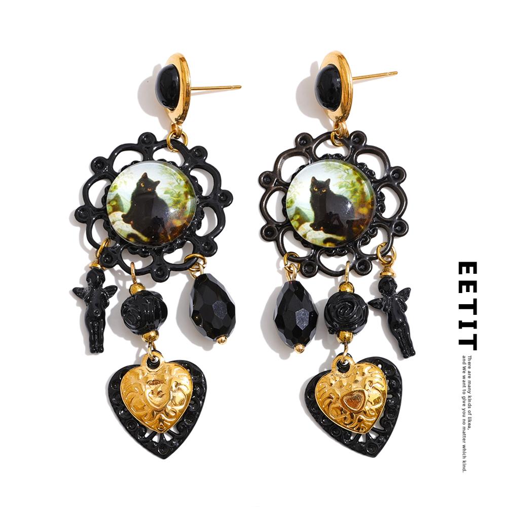 Eetit Vintage Acrylic Crystal Cat Angel Heart Drop Earrings for Women 2025 Stylish Unique Design Stainless Steel Retro Jewelry