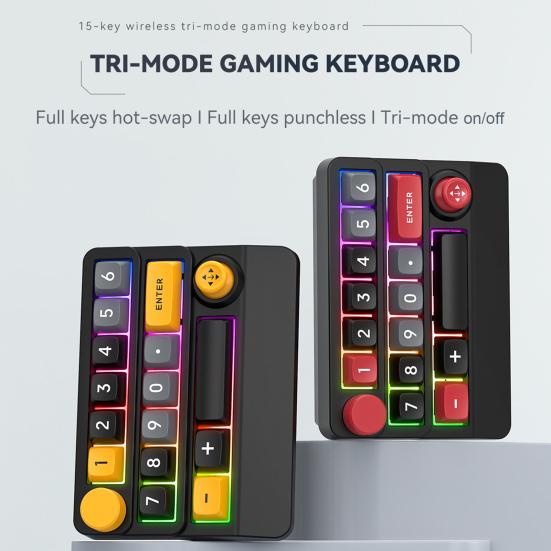 Mini clavier sans fil 3 modes avec rétroéclairage RVB, macro programmable, 15 touches remplaçables à chaud, DIY, pavé numérique mécanique de jeu à une main, accessoires PC