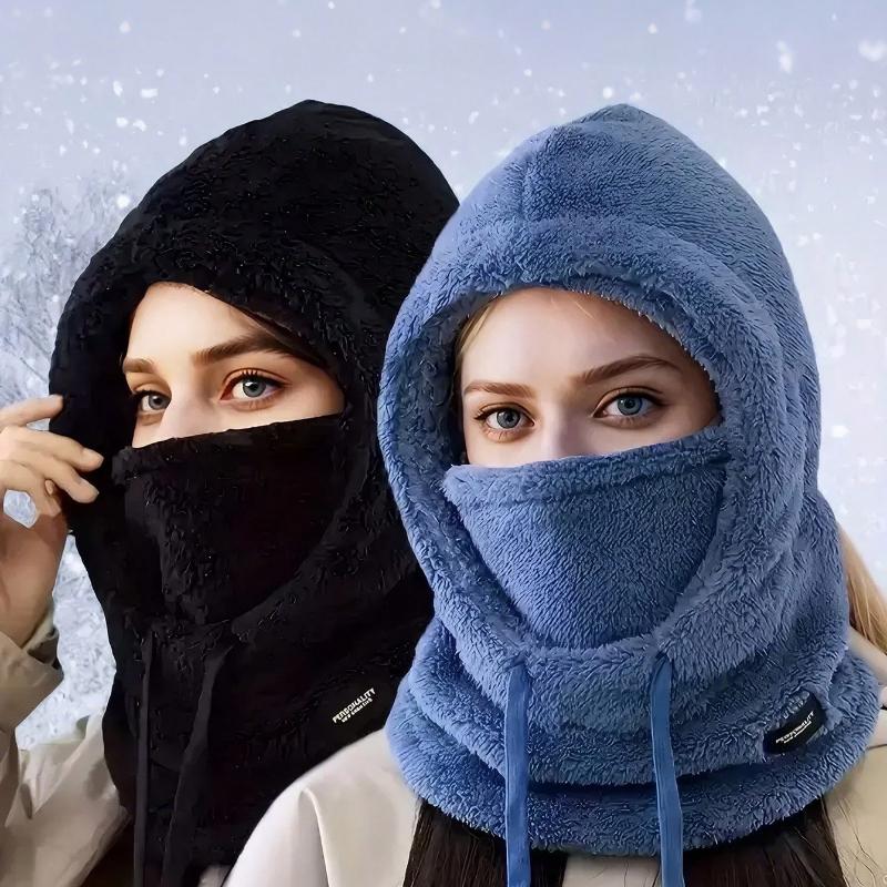 1 bonnet cache-oreilles et chauffe-cou d'hiver avec doublure thermique, masque de ski, chauffe-tête et cou tricoté en polyester, unisexe, léger, étiquette aléatoire