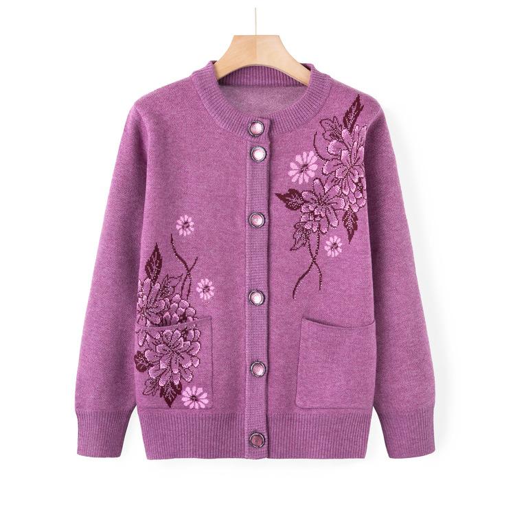 Middle-aged and Elderly New Sweater Jacket for Women Mothers Wear Autumn and Winter Sweater Casual Tops Grandma Cardigan Clothes