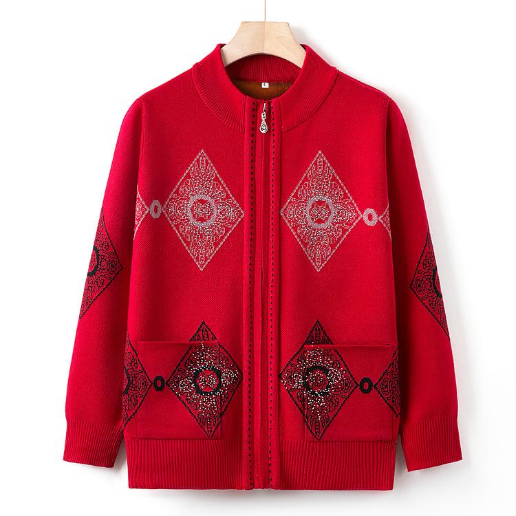 Manteau Grand-mère Printemps et Automne Plus Velours Vêtements Vieux Automne et Hiver Nouveau Pull Cardigan Pull Mère Vêtements Vieux.