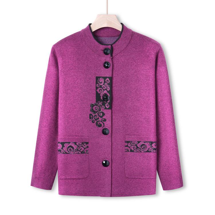 Middle-aged and Elderly Knitted Sweater New Autumn Cardigan Jacket 50 Years Old 60 Mother Sweater Old Lady Clothes