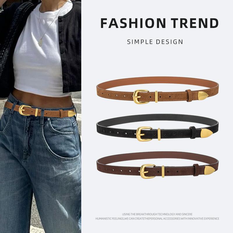 Frosted Reverse Velvet Women's Genuine Leather Belt Pin Buckle Versatile Jeans Casual Pants Decorative Belt Women's Style