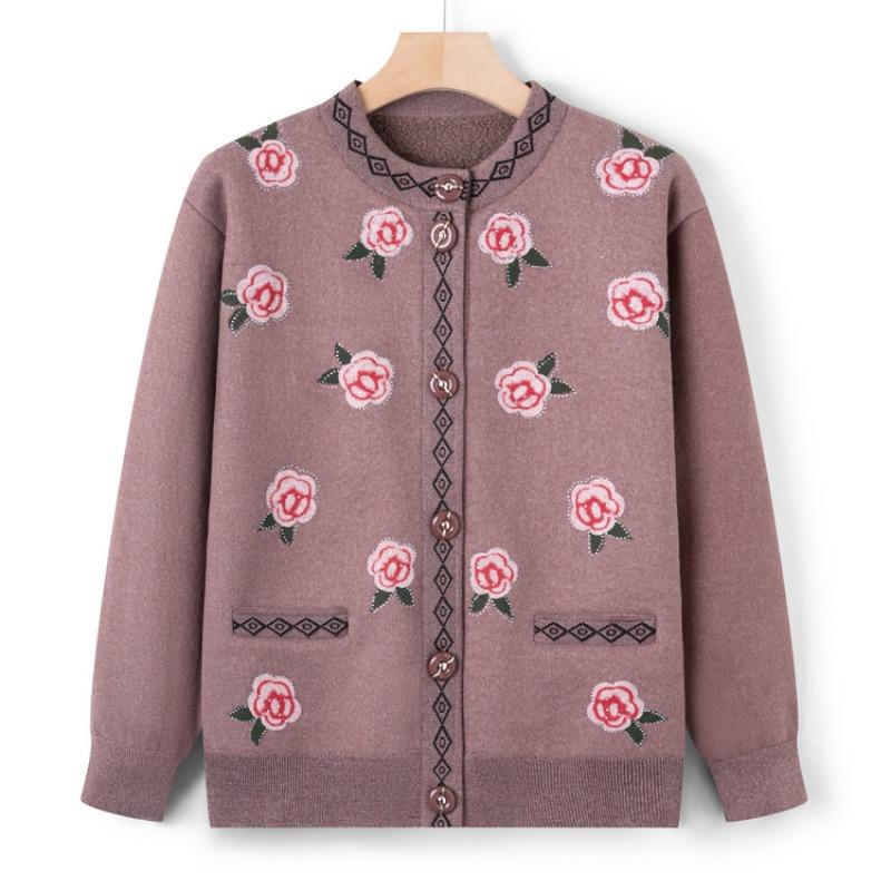 Middle-aged mother's autumn new velvet thickened knitted sweater grandma's cardigan printed top casual jacket