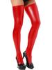 Chaussettes hautes cuissardes en cuir verni et pantalon en similicuir