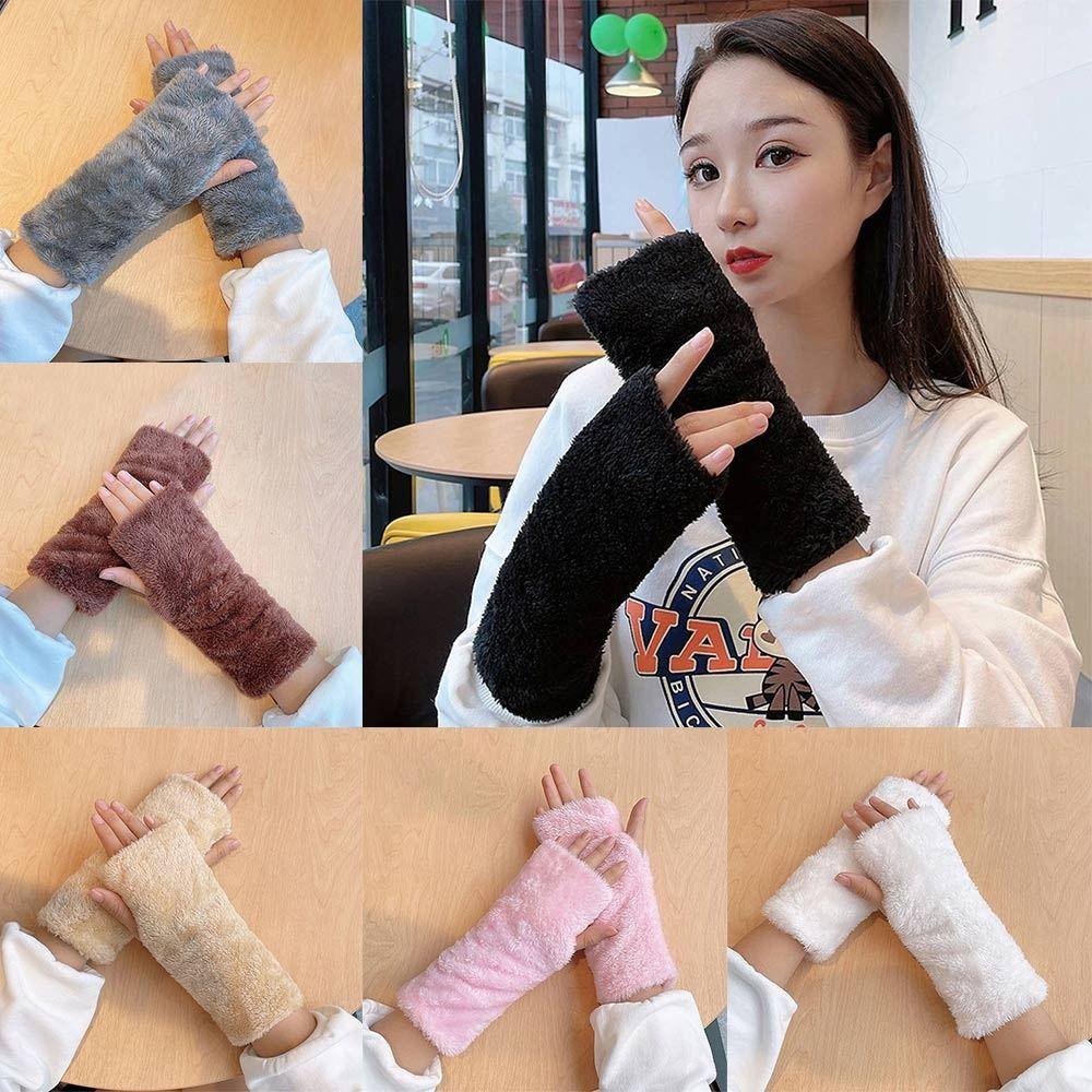 Gants Peluche Demi-Doigts Chauffe-Bras Moufles Sans Doigts Gants Mode Femme Hiver Automne