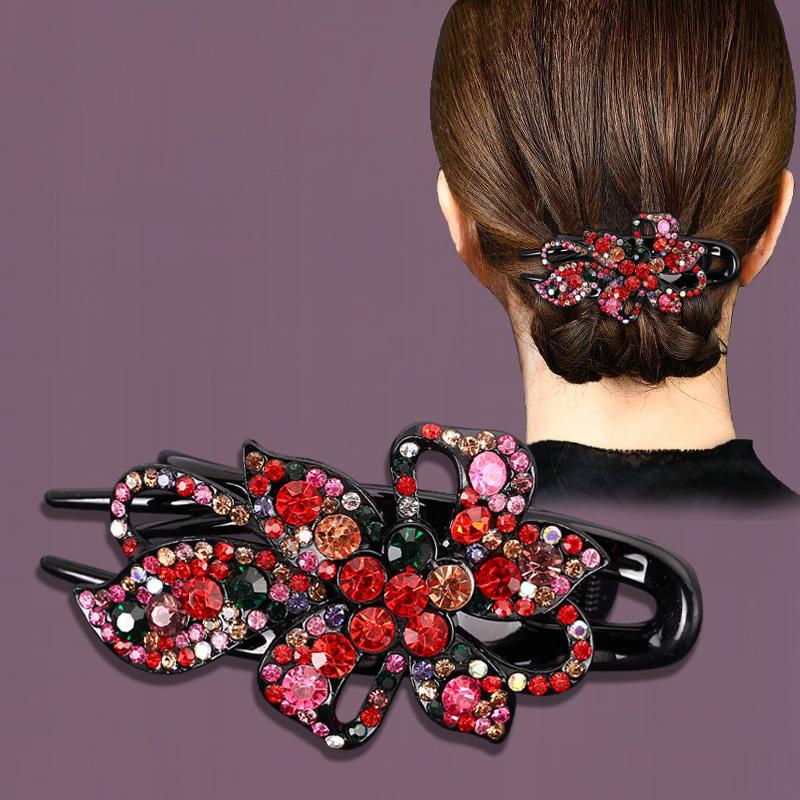 Pince à cheveux coréenne rétro à strass - Grand style bec de canard pour chignon