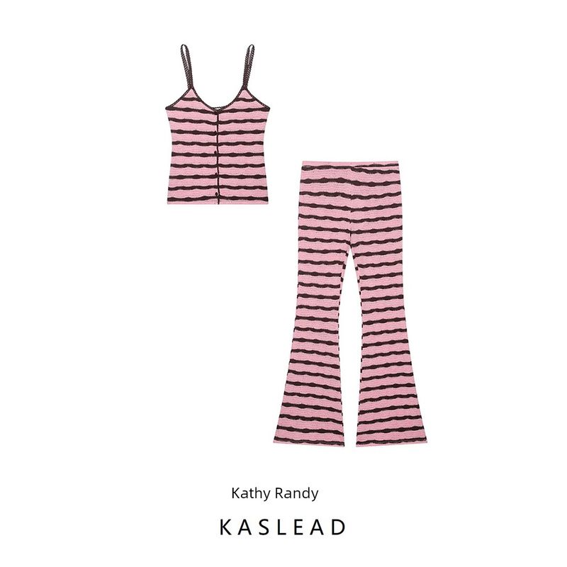 Kaslead New Women clothes Western Style Stripe Sling Top Flared Trousers 5644815 5644818