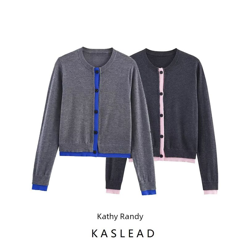 Kaslead New Women clothes Western Style Fashion Simple Patchwork Knitted Outerwear 3581005 802