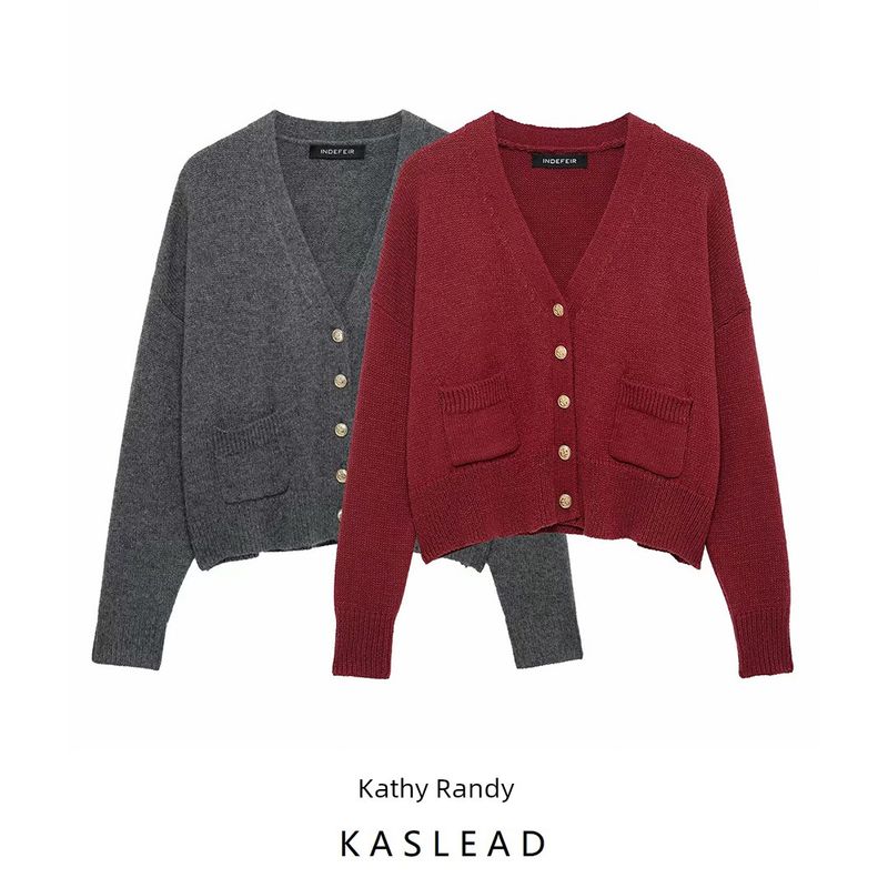 Kaslead New Arrival Women's Fashion Style Fashion Button Decoration Long Sleeves V-neck Knitted Jacket 2893014