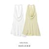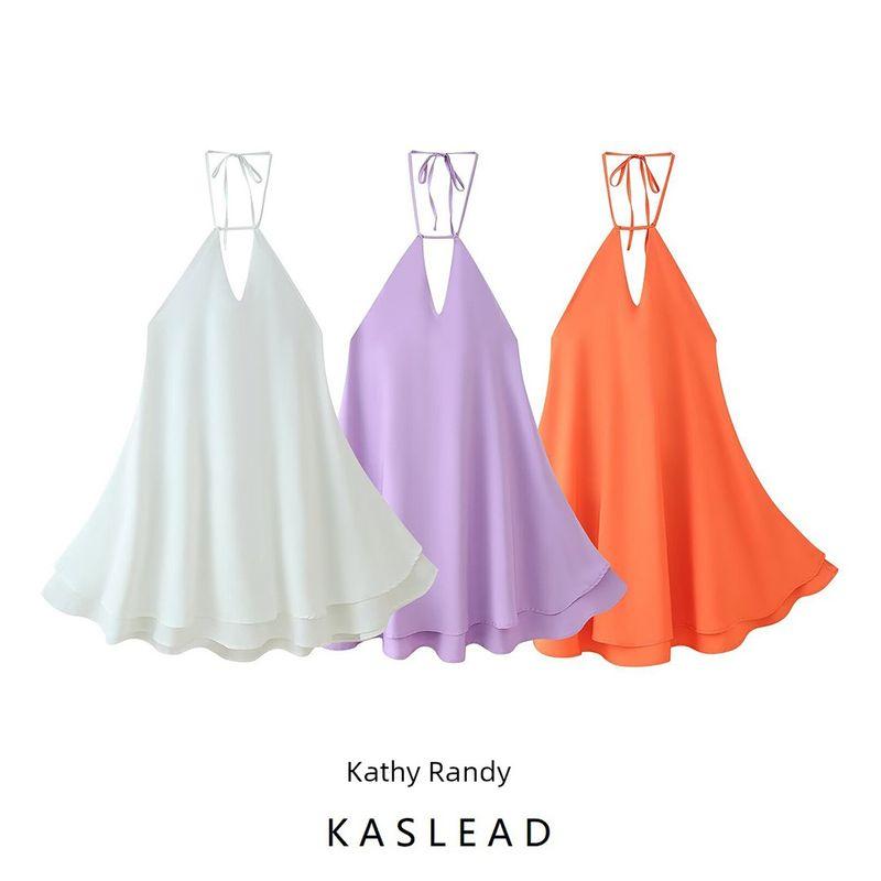 Kaslead New Women clothes Western Style Fashion Simple Loose Three Colors Hanging Neck Backless Short Dress
