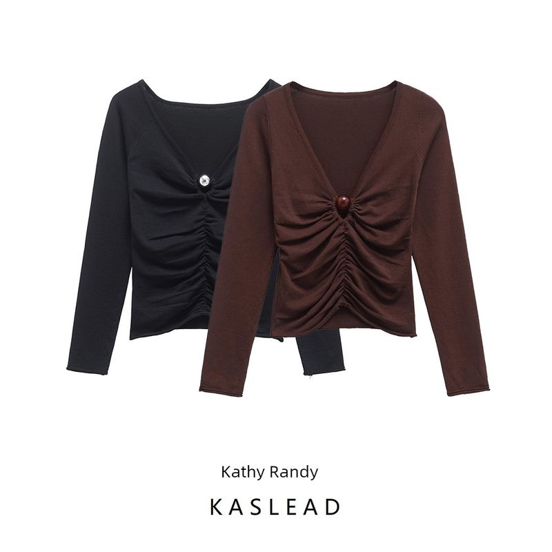 Kaslead New Arrival Women's Clothing Fashion Blowing Ball Accessories V Neck Long Sleeves Knitting Peplum Top 3920480