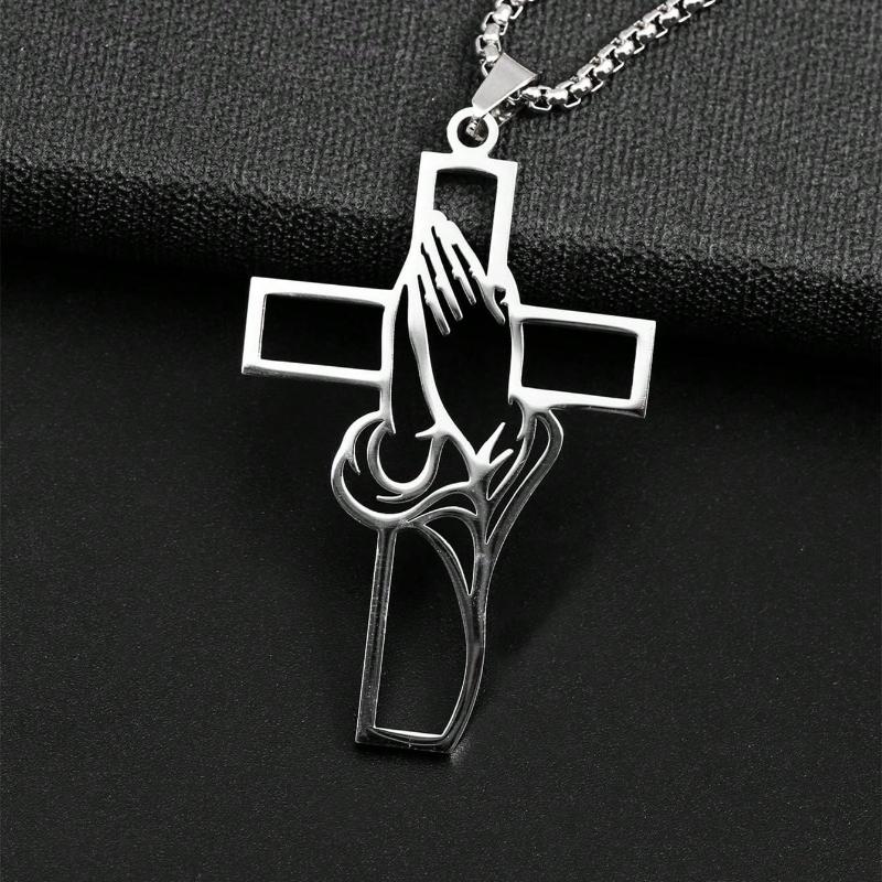 Collier Croix Biblique Chrétienne, Chaîne Pendentif Acier Inoxydable Pour Hommes, Bijou de Prière Jésus Cadeau, Corrente Men