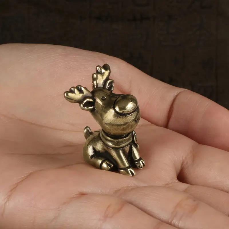 Figurine d'Élan en Laiton Fabriquée à la Main Ornements en Métal Cuivré avec Détail de Bois Décor d'Élan de Noël Décorations de Bureau pour la Maison Cadeau Élégant