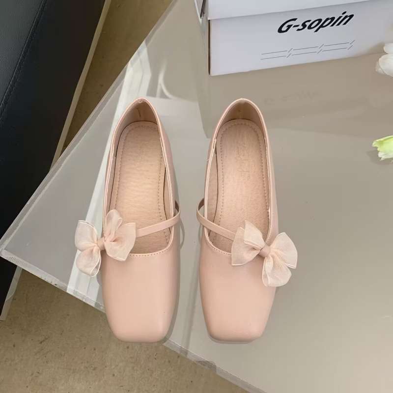 Chaussures simples pour femmes à bouche peu profonde printemps et été nouveau dentelle à bouche peu profonde tête carrée chaussures de grand-mère paresseuses avec jupe longue fond plat doux Do