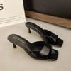 Pantoufles cool à talons hauts en cuir verni pour femmes 2025 été nouveau polyvalent talons fins bout carré sexy extérieur à un mot