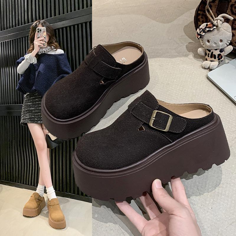 Chaussons à talon compensé épais rehaussant la hauteur pour femmes à porter au printemps, nouvelles petites chaussures à une pédale