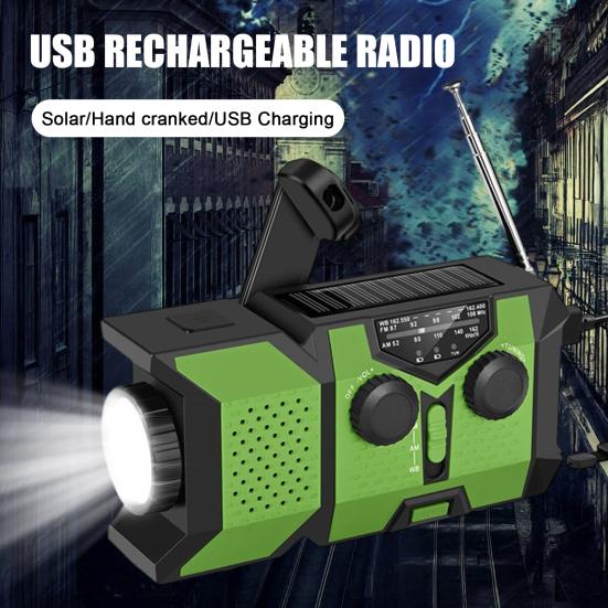 Emergency Radio with SOS Alarm Flashlight Solar Powered Hand Crank Rechargeable