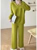 Ensemble Pantalon Tricot Décontracté Ample Coréen à Jambes Larges et Pull Polo Uni pour Femmes - Collection Automne/Hiver Deux Pièces