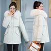 Veste en coton à capuche pour femme Manteau trench mi-long à col en fourrure Épais Chaud Pardessus Veste en peluche de velours pour femme