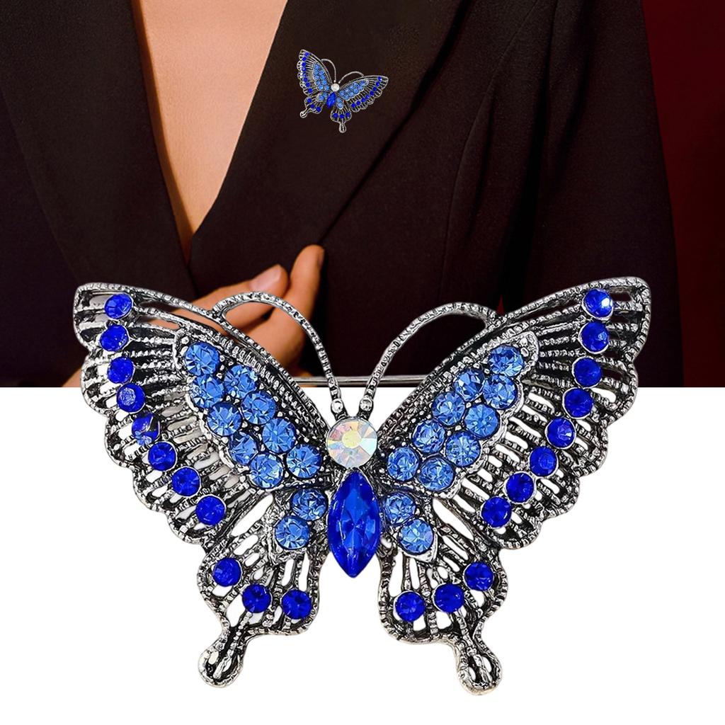 Broche papillon élégante présente des designs chinois d'inspiration vintage avec un accent de strass complexe, fabriquée en alliage pour un port de longue durée et une durabilité.