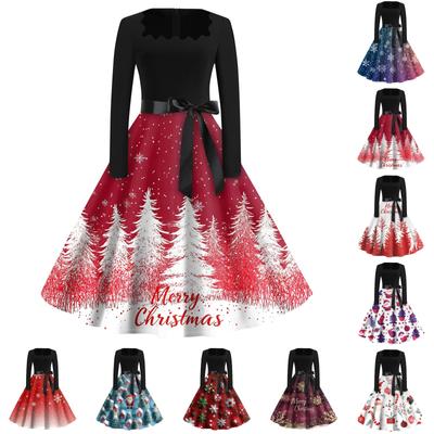 Robe Évasée à Imprimé Noël Pour Femmes Robe à Manches Longues Creuse Fête Décontractée Robes à Col Carré