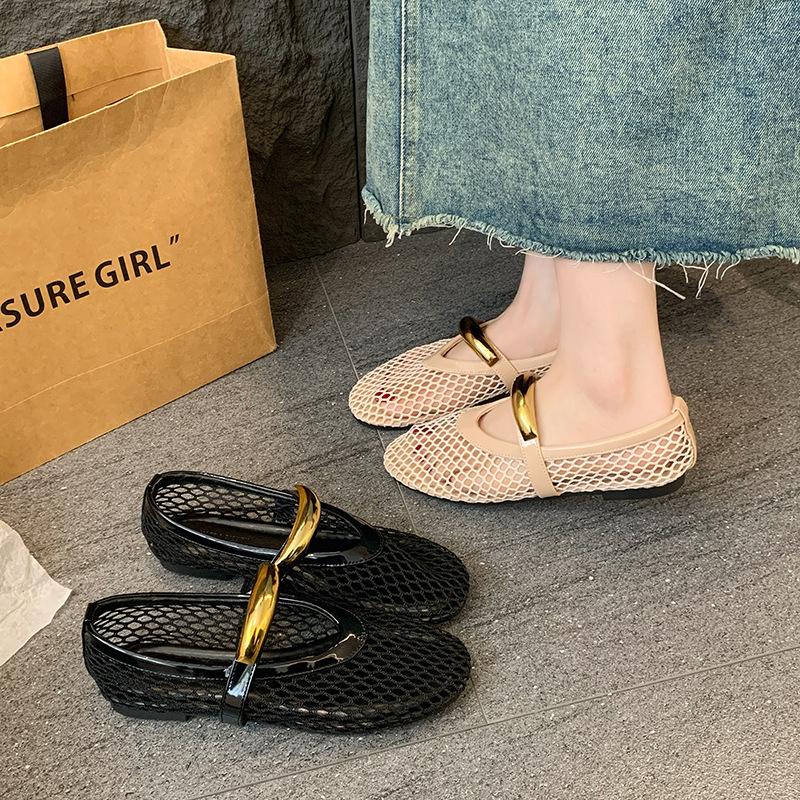 Chaussures simples respirantes en maille à fond plat pour femmes 2025 nouvel été creuses Mary Jane chaussures de soirée douces sandales à bout fermé