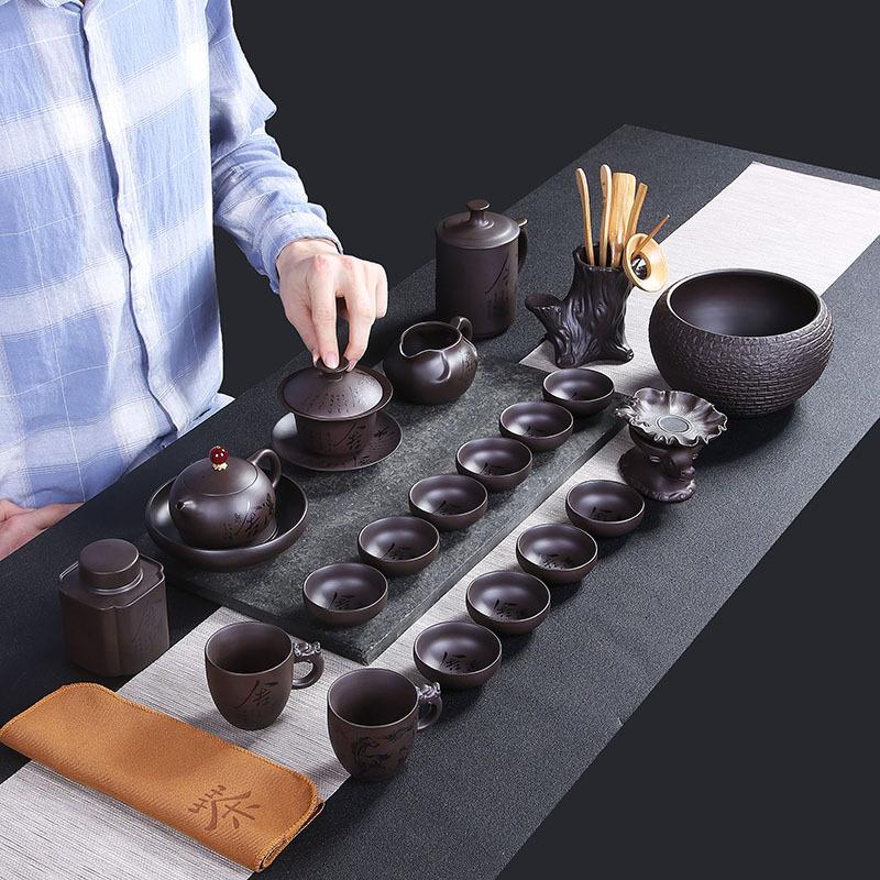 Coffret cadeau de service à thé de voyage Kung Fu en céramique haut de gamme sable violet, cadeaux d'événement d'entreprise pour la Fête de la Mi-Automne