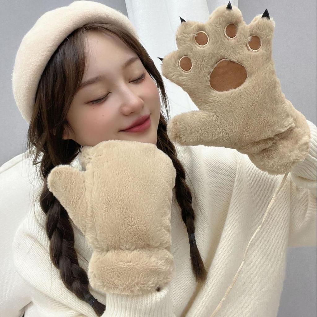 Gants Mignons d'Automne et d'Hiver pour Femmes avec Pattes d'Ours et de Chat en Peluche - Épais, Chaud, Design Cartoon pour Étudiantes
