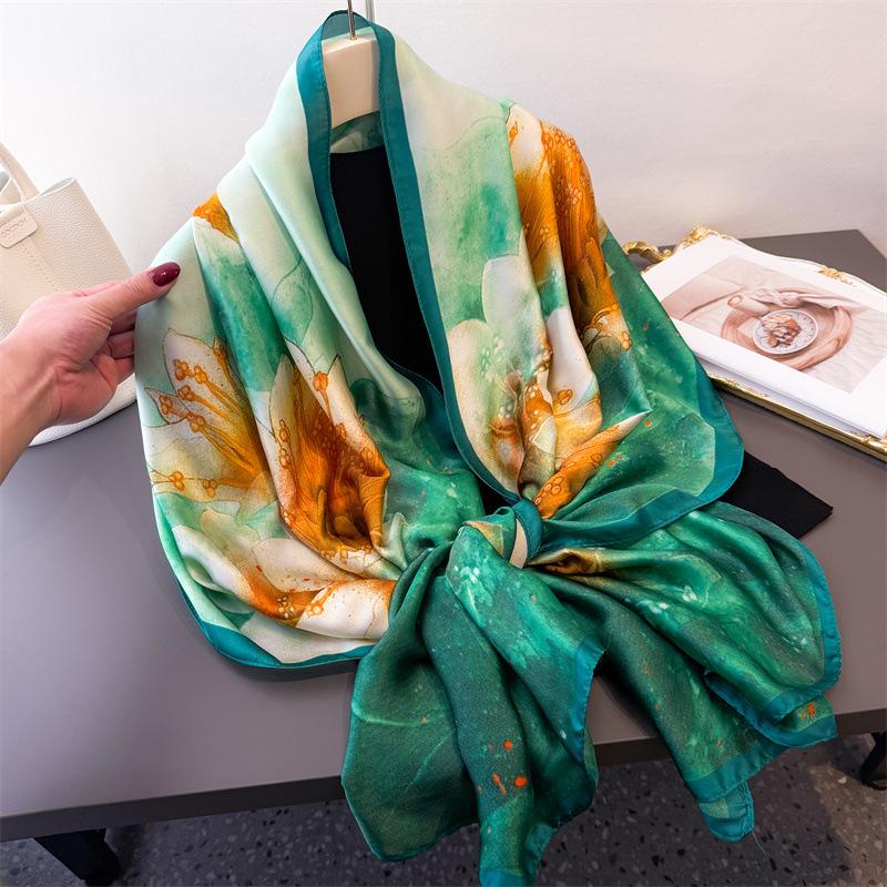 2025 Silk Beach Stoles Women Hijab Scarf Sunscreen Shawl Wraps Ladies Scarves Foulard Beach Stoles Female Large Bandana Echarpe