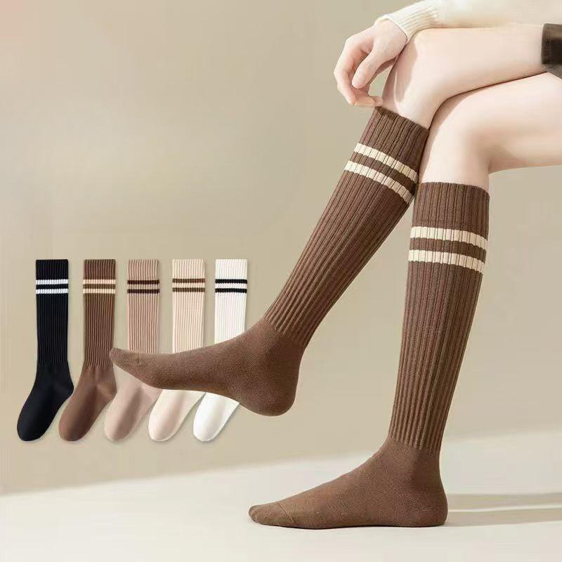 Calf Socks Women's Half-leg Long Socks Trendy School Style Solid Color Two-bar Simple and Versatile High Socks Cotton Pile Socks