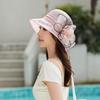 Chapeau de soleil en organza pour femmes avec grande fleur faite à la main, petit bord, protection solaire, fedora en maille européen-américain