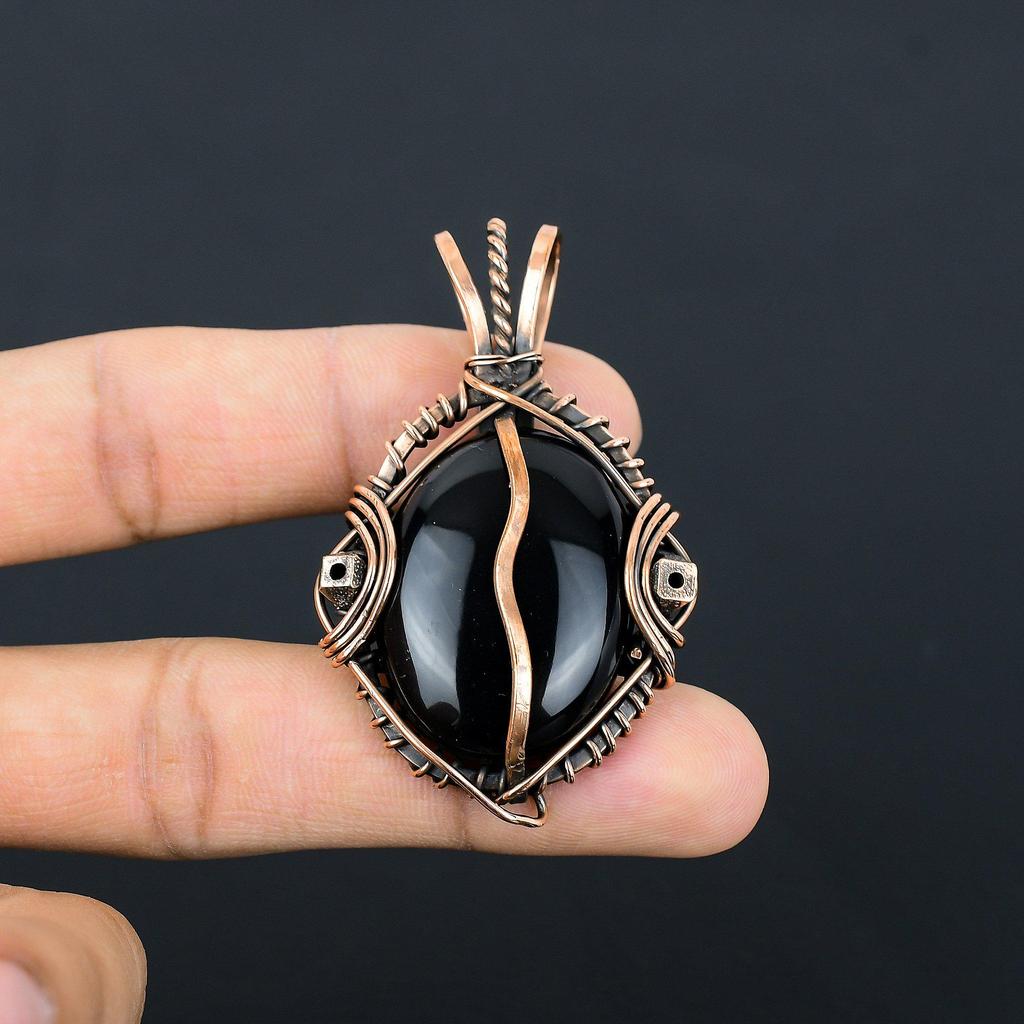 Bijoux en Onyx Noir, Pendentif Enveloppé de Fil de Cuivre 999 Fait Main Bijoux en Pierre Précieuse, Cadeaux Pour Femme Pendentif Tout Neuf