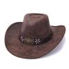 Rolled Brim Cowboy Hat for Woman Men Wear Resistant Cowboy Hat with Hat Band Western Style Large Brim Windproof Hat