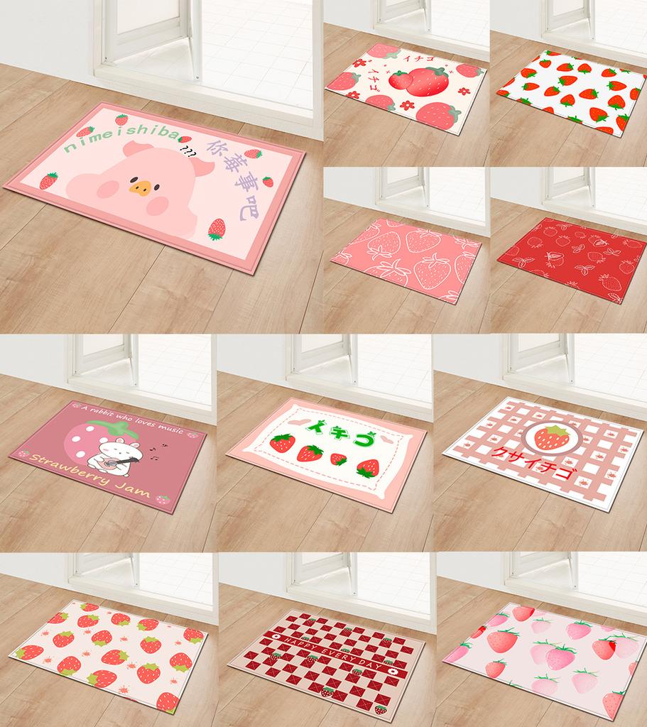 Strawberry Girl Heart Bathroom Absorbent Floor Mat Entry Door Mat Bedroom Door Mat Bathroom Non-Slip Foot Mat