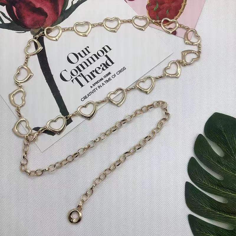 Chaîne de taille en métal amour européen et américain pour femmes, ceinture polyvalente, baume décoratif pour robe, jupe moulante, jupe, chaîne de jupe