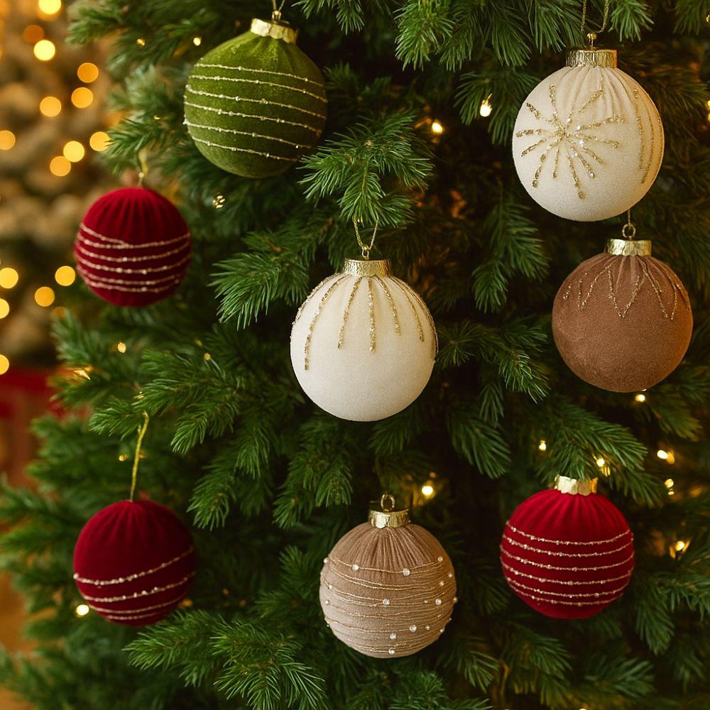 4 pièces Boules de Noël en Velours 8CM Incassables Cadeaux de Noël Boule Décoration de Fenêtre
