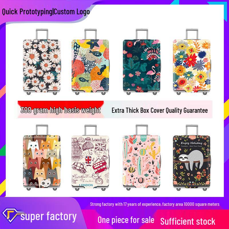Elastic Zippered Travel Suitcase Protective Cover - Durable, Printed, and Wear-Resistant